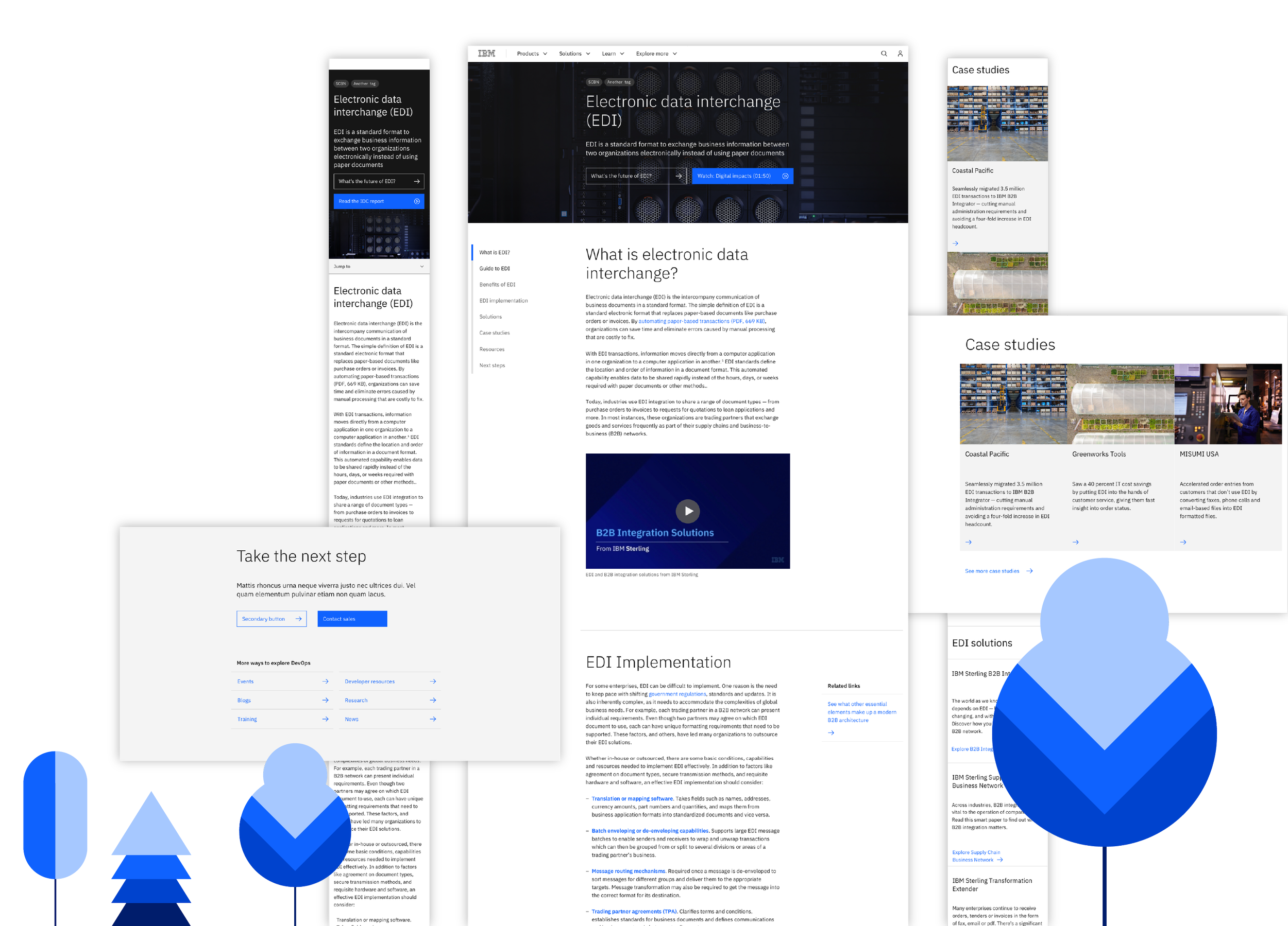 A major part of the project involved designing consistent, reusable page experiences across IBM.com while leveraging the Carbon design system. I worked directly with internal teams who owned specific page types, including Product pages, Education pages, and Case Study pages. For each page type, I: